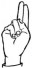 На ћирилици написано КРИСТИНА ГЛУШИЋ састоји се из 14 слова [?]. Исписано ћириличном једноручном азбуком за глувонеме: